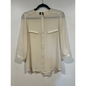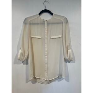 MNG Mango Minimalist Cream Long Sleeve Blouse XS Business Casual Officewear