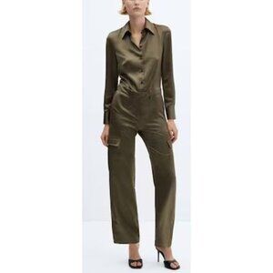 This chic Mango One Piece Jumpsuit in olive green is perfect for a stylish, comfortable look. With a cargo design and fitted silhouette, it's ideal for any casual or semi-formal occasion.