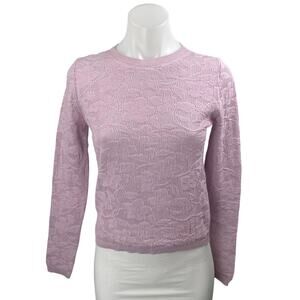 MNG Mango Pink Jacquard Floral Brocade Crewneck Long Sleeve Knit Sweater Top XS
