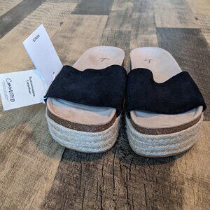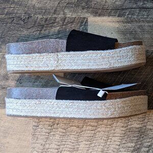MNG Mango Platform Espadrille Sandals Leather Upper & Footbed
