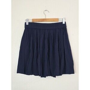 MNG Mango Pleated A-Line Mini Skirt Womens Size Small Navy Blue Pockets