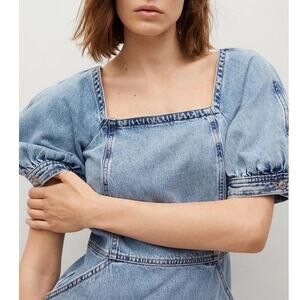 MNG Mango Puff Sleeve Denim Jean Mini Dress Square Neckline 6