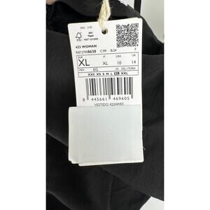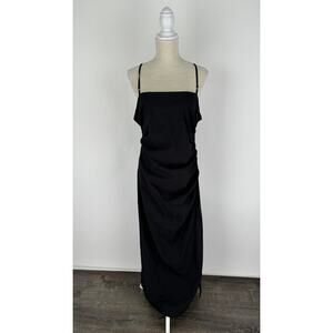 MNG Mango Ruched Midi Dress Womens Size 10 Square Neck New Black Sleeveless