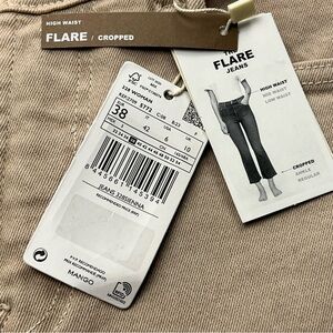 MNG Mango Sienna Flare Cropped High Waist Tan Khaki Denim Jean Womens Size 6 NEW