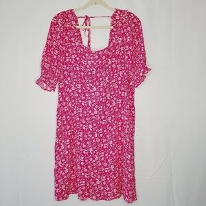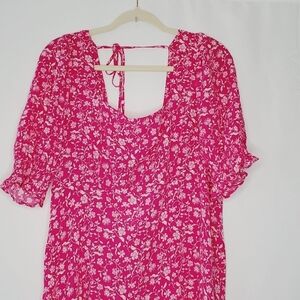 MNG Mango Solange Ditsy Floral Dress Size 12 Puff Sleeves Open Back Babydoll NEW