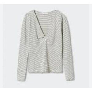 MNG Mango Stripedd Knot V Neck Long Sleeve T Shirt Sz XL NWT