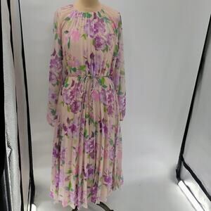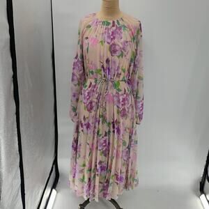 MNG Mango Textured Dress Tie Up Neckline Puff Sleeve Maxi Floral Multicolor