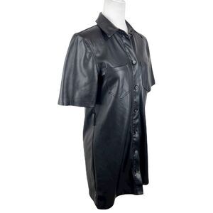 MNG Mango Vegan Leather Mini Dress Women 4 Black Button Up Collared Casual