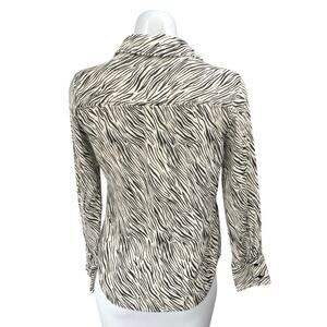 MNG Mango White Black Zebra Animal Print Long Sleeve Button Down Shirt Top Sz 4