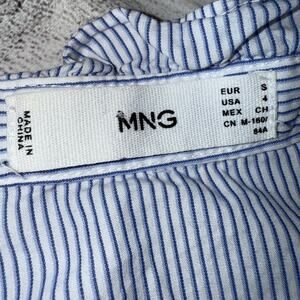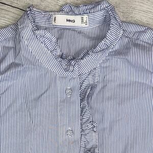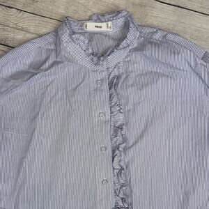 MNG Mango Women's Blue Pinstripe Buttoned Shirt with Ruffle Detail Size 4