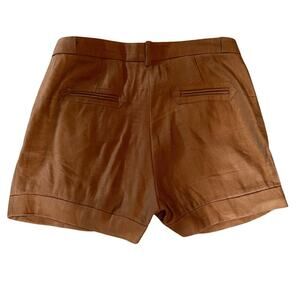 MNG Mango Women's Linen/Viscose Shorts. Pleated Front, Side Pockets, Back Pockets (still sewn shut), Cuffed Hem, Zipper and Flap Hook Closure. Color Copper. Size XXL
