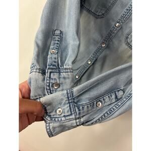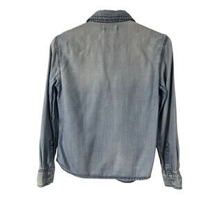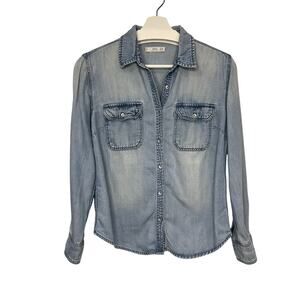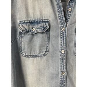 MNG Mango Women’s Minimalist Denim Chambrey Button down Shirt XXS