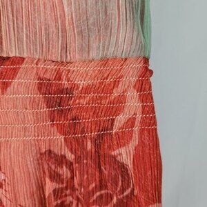 MNG Mango Women's Red/Green Floral Fully Lined V-neck Knee-Length Sundress Sz 4