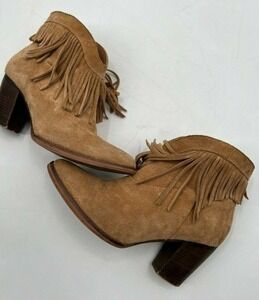 MNG Mango Womens Size 38 Boho Style Fringe Suede Slip-On Ankle Booties Tan Brown.