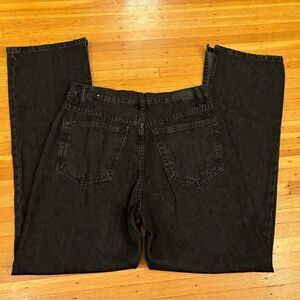 MNG Miranda High Waist Straight Regular Black Jeans NWT. 2 pockets in front and back. Belt loops. Cuff slits (6 1/2 inches). 100% cotton. Waist across front 15 1/2 inches. Rise 12 1/2 inches. Inseam 32 inches. Size US 10. Brand new with tags.