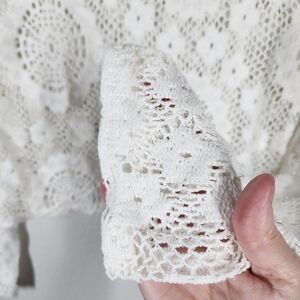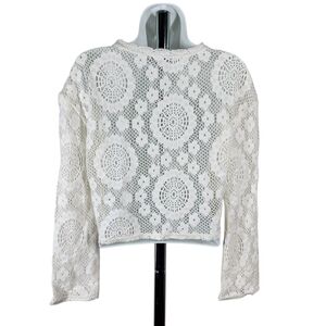 Chic lace blouse with intricate patterns. Perfect for layering or standalone wear. Adds elegance to any outfit.