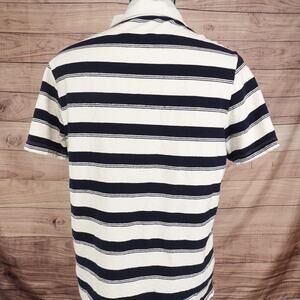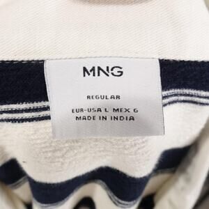 MNG Polo Shirt Mens Large Navy White Stripe Regular Fit Short Sleeve Collared