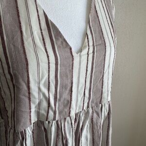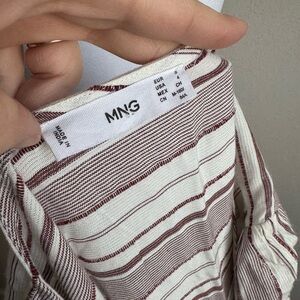MNG Red Cream Striped V-Neck Mini Babydoll Shirt Dress Women 4 Boho Cottagecore