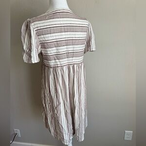MNG Red Cream Striped V-Neck Mini Babydoll Shirt Dress Women’s 4 Boho Cottagecore Preppy