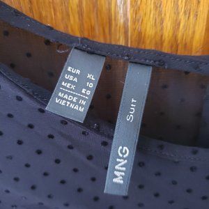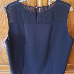 This top has black sheer polka dots on top . One button closure in the back. Top is gently used.