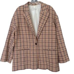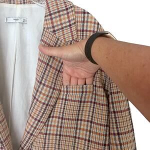 MNG Suit Plaid Blazer Women’s Medium Tan Pink Black Double-Breasted Career Mango