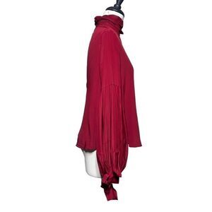 MNG Suit Red Sexy Moc Turtleneck Balloon Sleeve Silk Blouse Size 4