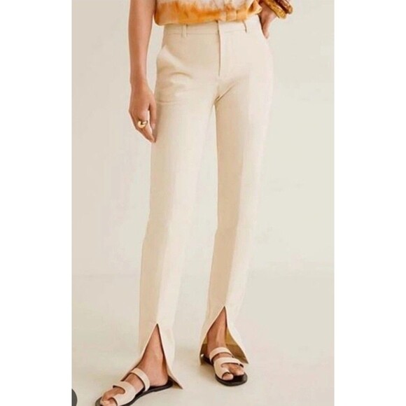MNG Suit Split Hem Pants in Cream Ivory SZ 4
