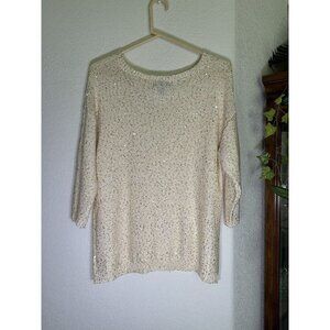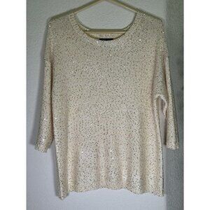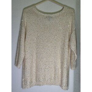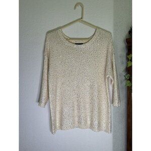 MNG Suit brand Sweater Cream Gold Sequin Metallic Women's Size Small Lightweight