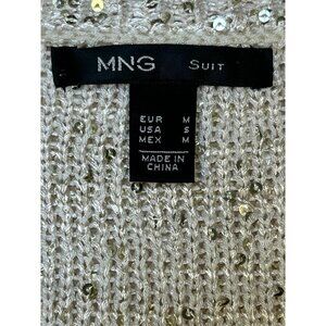 MNG Suit brand Sweater Cream Gold Sequin Metallic Women's Size Small Lightweight Glitz Sparkle
