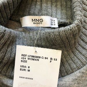 MNG Mango Turtleneck Sweater Dress High Neck Long Sleeve Gray Size 6