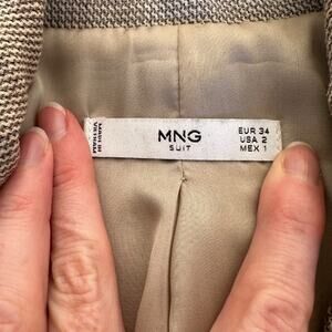 MNG Tweed Style Single Breasted Blazer in Cream and Brown