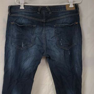 Brand & Description: MNG Womens 14 Lonny Boyfriend Factory Distressed Patch Slim Leg Denim Jeans 36x28