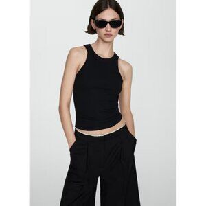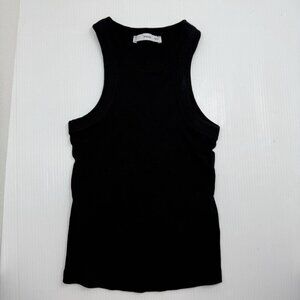 MNG Women's Black Ribbed Cotton Blend Tank Top Size Small