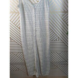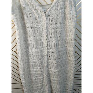 MNG Women's Crotchet Midi Dress White Button Up Sleeveless Size Medium READ