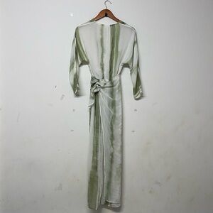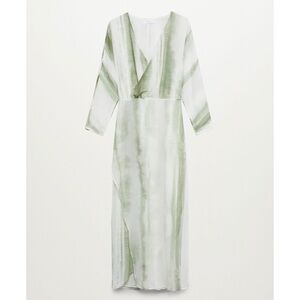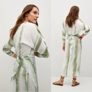 MNG Wrap Tie Dye Midi Dress V Neck Long Sleeve Pastel Green Medium