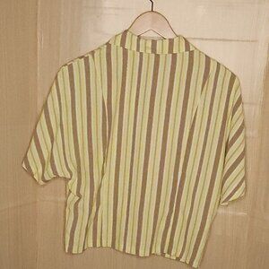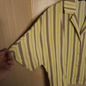 MNG Yellow Tan Striped Cropped Silky Flowy Button Down 6