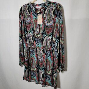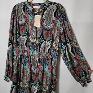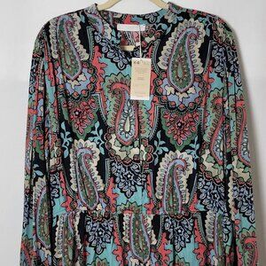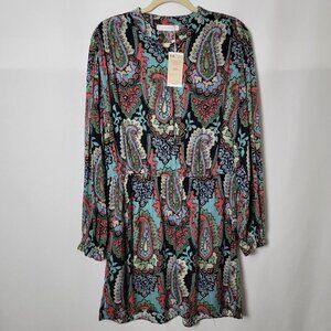 MNG by Mango Baroque Multicolor Bold Paisley Peasant Elastic Waist Dress XL