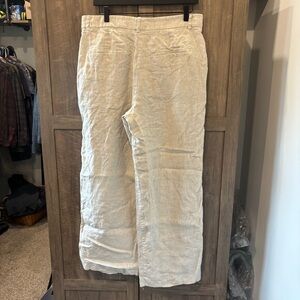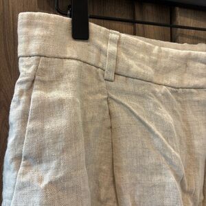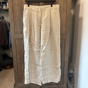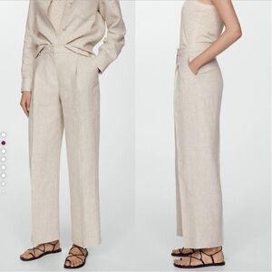 MNG by Mango Beige 100% Linen Straight Wide Leg Pleated Trousers Pants Size 10