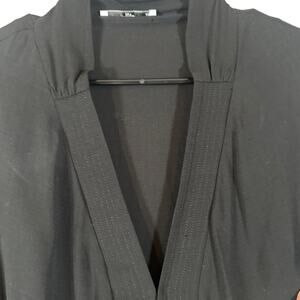 MNG by Mango Black Tie Knot Front Long Sleeve V-Neck Blouse Women Sz 8