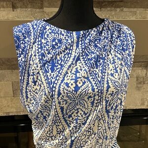 MNG by Mango Blue and White Midi Dress with Belt size XL