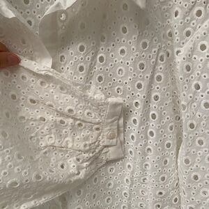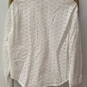 MNG by Mango Elegant Stylish White Open Eyelet 100% Cotton Blouse Shirt Size S