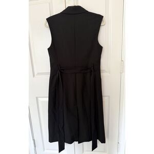 Brand new/with tags (never worn). This vest style waistcoat dress is the perfect tailored piece blending blazer styling with vest versatility. Perfect for work, dressy evenings, or layered chic looks. Can be worn with matching trouser pants for a full suit look or as a layering piece. It has a self-tie waist sash for optional shaping and two discrete side pockets.