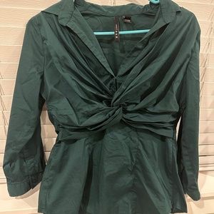 Gorgeous MNG tie knot blouse in gorgeous forest green.