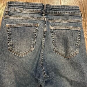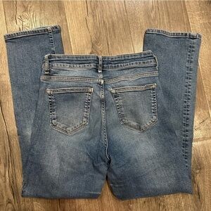 • Features: Straight legged, 5 pocket mid-rise design in a medium wash. Ankle length
