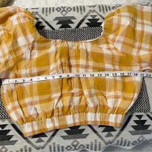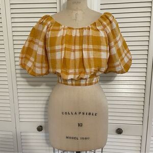 MNG by Mango Yellow Plaid Cotton Cropped(elastic hem)Peasant Top Sz-S NWT!