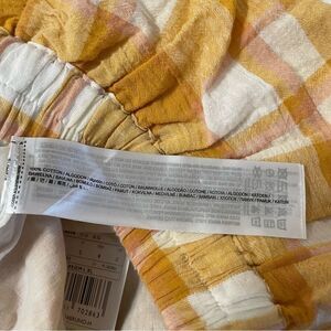 MNG by Mango Yellow Plaid Cotton Cropped Peasant Top Sz-S NWT!