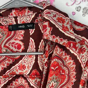 MNG cardigan kimono boho Paisley Red and Black Long Robe style
