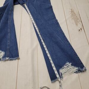 Really cute MNG Mango jeans! Wider/flare leg (There's a double seam at the bottom for a wider fit). Dark wash and a button fly with natural distressing. In excellent condition, size 4.