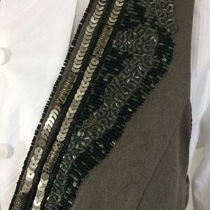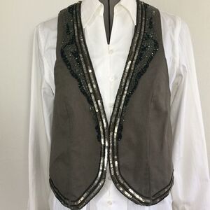 MNG Mango NEW Sequin Bead Embellished Olive Green Cotton Canvas Vest