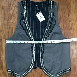 MNG Mango Sequin Bead Embellished Olive Green Cotton Canvas Vest NEW